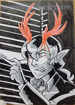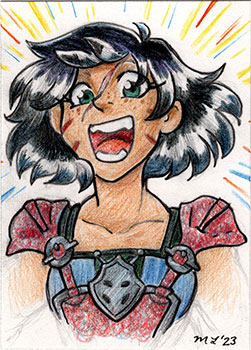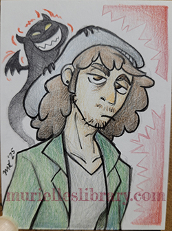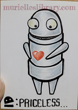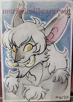 Every convention, I have a selection of Artist Trading Cards for sale, and will also do commissions in this size, time permitting. Each card is hand drawn and either in black and white ink or coloured with coloured pencil, making them all unique. Please forgive the image quality on some of these, they are often taken with my phone at the convention just prior to pick up.