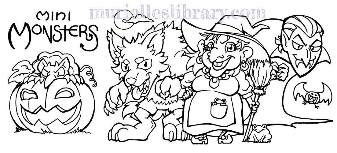 Critters in a Crate and Mini Monsters are very small, 8 page coloring books featuring a series of slightly squished in monsters, mythical creatures, or animals. They are printed on a heavier paper so you can use marker or a light wet media.
